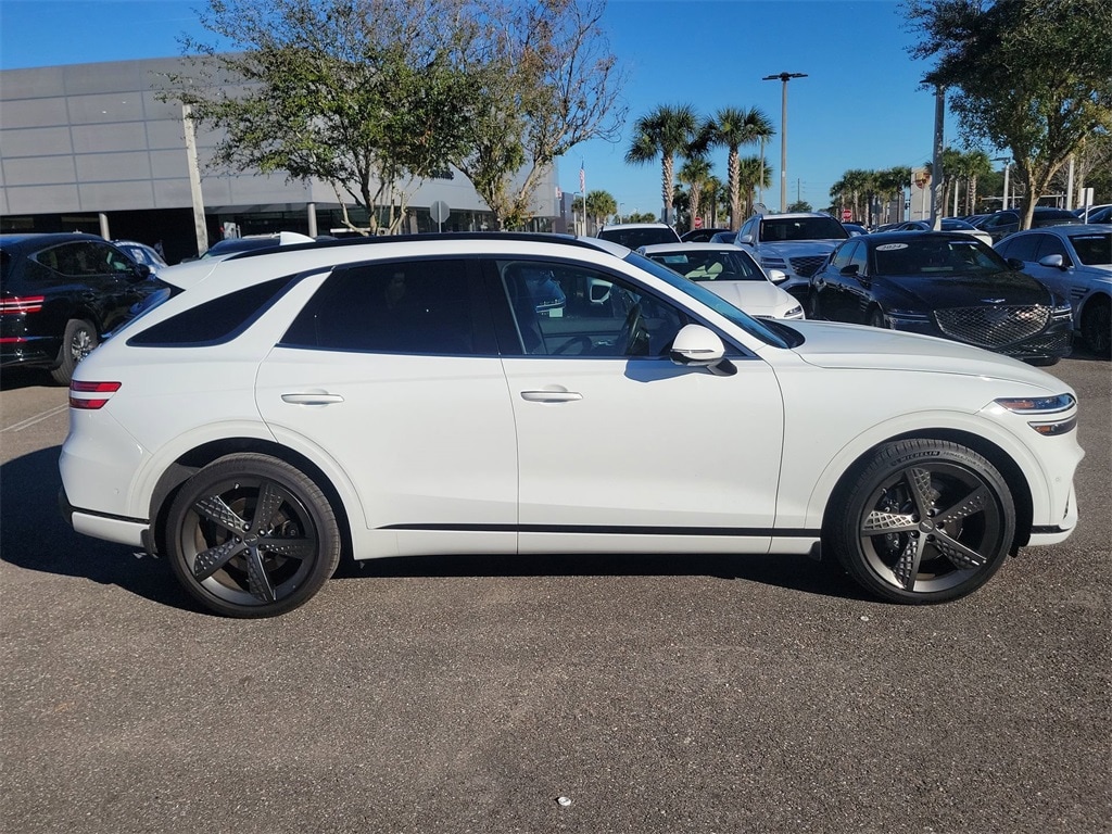 This vehicle comes equipped with Sport Appearance, Sport Prestige Package (12.3" 3D Digital Instrument Cluster, 2nd Row 110V AC Power Outlet, 3-Zone Climate Control, 4-Way Power Lumbar Front Passenger Seat, Adjustable Interior Ambient Lighting, Advanced Rear Occupant Alert, Alloy Pedals, Aluminum Trim w/Haptic Carbon Pattern, Blind-Spot View Monitor, Ergo Motion Seat, Forward Attention Warning, Forward/Reverse Parking Distance Warning, Genesis Digital Key, Heated Steering Wheel, Integrated Memory System (IMS), Leather Seating Surfaces w/Mesh Insert, Leatherette Wrapped Upper Instrument Panel, Lexicon Premium Audio, Manual Rear Door Shades, Option Group 02, Option Group 03, Option Group 04, Passenger Walk-In Device, Power Driver Seat Bolster & Cushion Extension, Power Folding ECM Mirrors w/Genesis Logo Lamp, Power Telescoping Steering Wheel, Power Tilt & Slide Panoramic Sunroof, Remote Smart Parking Assist, Reverse Parking Collision-Avoidance Assist, Surround View Monitor, Ventilated Front Seats, and Wheels: 21" Dark Sputtering Sport Alloy), Genesis Certified Certified, 4-Wheel Disc Brakes, 9 Speakers, ABS brakes, Air Conditioning, Alloy wheels, Aluminum Trim w/Spin Brushed Pattern, AM/FM radio: SiriusXM, Android Auto & Apple CarPlay, Anti-whiplash front head restraints, Auto High-beam Headlights, Auto-dimming Rear-View mirror, Automatic temperature control, Brake assist, Bumpers: body-color, Cargo Net, Delay-off headlights, Driver door bin, Driver vanity mirror, Dual front impact airbags, Dual front side impact airbags, Electronic Stability Control, Emergency communication system: Genesis Connected Services, Exterior Parking Camera Rear, First Aid Kit, Four wheel independent suspension, Front anti-roll bar, Front Bucket Seats, Front Center Armrest w/Storage, Front dual zone A/C, Front reading lights, Fully automatic headlights, Garage door transmitter: HomeLink, Heated door mirrors, Heated Front Bucket Seats, Heated front seats, Illuminated entry, Knee airbag, Leather Seating Surfaces, Leather steering wheel, Leatherette Seating Surfaces, Low tire pressure warning, Navigation System, Occupant sensing airbag, Outside temperature display, Overhead airbag, Overhead console, Panic alarm, Passenger door bin, Passenger vanity mirror, Power door mirrors, Power driver seat, Power Liftgate, Power passenger seat, Power steering, Power windows, Radio: 14.5" Navigation System w/AM/FM/HD Radio, Rain sensing wipers, Rear anti-roll bar, Rear Parking Sensors, Rear reading lights, Rear seat center armrest, Rear window defroster, Rear window wiper, Remote keyless entry, Roadside Assistance Kit, Security system, Speed control, Speed-sensing steering, Speed-Sensitive Wipers, Split folding rear seat, Spoiler, Steering wheel mounted audio controls, Tachometer, Telescoping steering wheel, Traction control, Trip computer, Turn signal indicator mirrors, Variably intermittent wipers, Wave Line Backlit Trim, Wheel Locks, and Wheels: 19" Dark Hyper Silver Alloy .