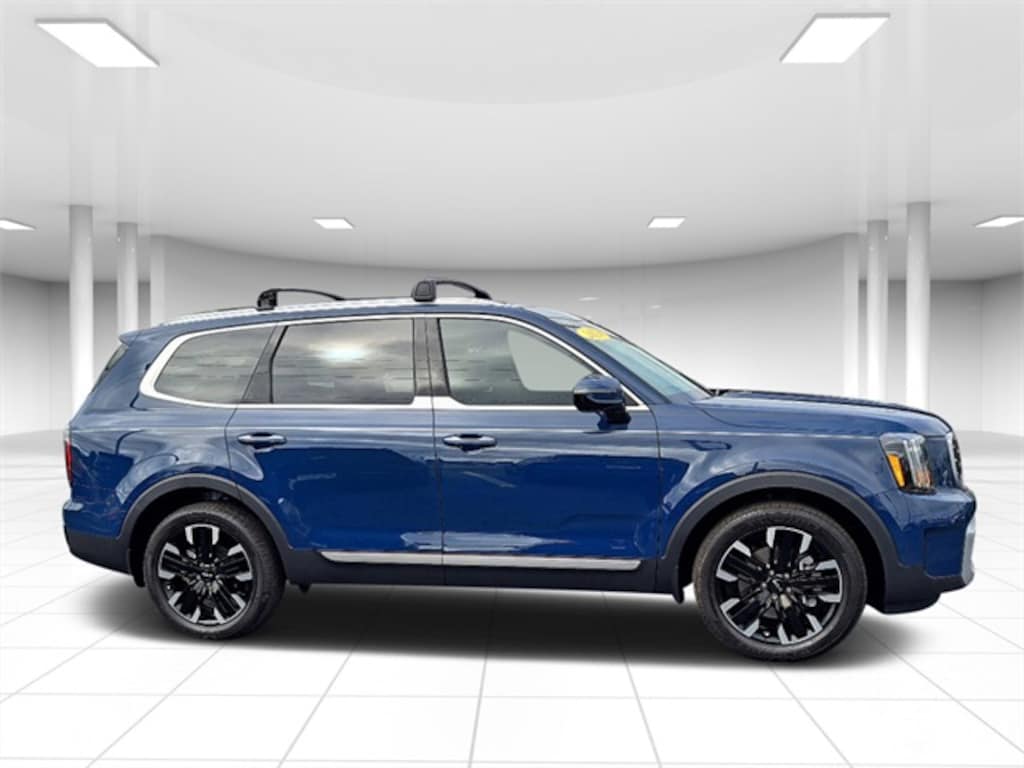 The price does not include tax, tag, license, an electronic filing fee of $449.00**, a private tag agency fee of $199.00**, and a predelivery service charge of $1199.00** **This charge represents costs and profit to the dealer for items such as inspecting, cleaning, and adjusting vehicles, as well as preparing documents related to the sale. * EPA-estimate metric: these are contingent on ideal conditions within a lab. Real-world situations such as carrying passengers or cargo, using climate control, driving style, and ambient temperatures can affect actual metrics. 18/24 City/Highway MPG Certified. Midnight Lake Blue 2024 Kia Telluride SX-Prestige AWD 8-Speed Automatic 3.8L V6 DOHC