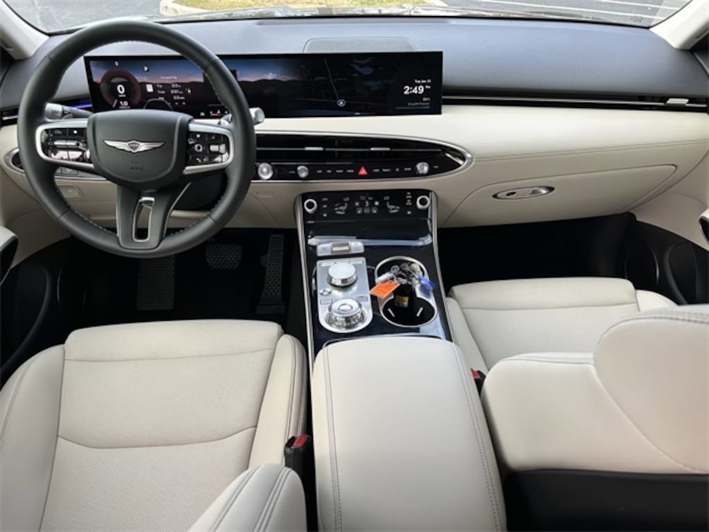 This vehicle comes equipped with Option Group 01, 4-Wheel Disc Brakes, 9 Speakers, ABS brakes, Air Conditioning, Alloy wheels, AM/FM radio: SiriusXM, Android Auto & Apple CarPlay, Anti-whiplash front head restraints, Auto High-beam Headlights, Auto-dimming Rear-View mirror, Automatic temperature control, Brake assist, Bumpers: body-color, Cargo Block, Cargo Net, Cargo Tray, Delay-off headlights, Driver door bin, Driver vanity mirror, Dual front impact airbags, Dual front side impact airbags, Electronic Stability Control, Emergency communication system: Genesis Connected Services, Exterior Parking Camera Rear, First Aid Kit, Four wheel independent suspension, Front anti-roll bar, Front Bucket Seats, Front Center Armrest w/Storage, Front dual zone A/C, Front reading lights, Fully automatic headlights, Garage door transmitter: HomeLink, Heated door mirrors, Heated Front Bucket Seats, Heated front seats, Illuminated entry, Knee airbag, Leather steering wheel, Leatherette Seating Surfaces, Low tire pressure warning, Navigation System, Occupant sensing airbag, Outside temperature display, Overhead airbag, Overhead console, Panic alarm, Passenger door bin, Passenger vanity mirror, Power door mirrors, Power driver seat, Power Liftgate, Power passenger seat, Power steering, Power windows, Radio: 14.5" Navigation System with AM/FM/HD, Rain sensing wipers, Rear anti-roll bar, Rear reading lights, Rear seat center armrest, Rear window defroster, Rear window wiper, Remote keyless entry, Security system, Speed control, Speed-sensing steering, Speed-Sensitive Wipers, Split folding rear seat, Spoiler, Steering wheel mounted audio controls, Tachometer, Telescoping steering wheel, Traction control, Trip computer, Turn signal indicator mirrors, Variably intermittent wipers, and Wheels: 19" Light Hyper Silver Alloy . 22/28 City/Highway MPG