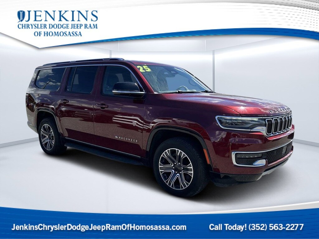 WE DELIVER TO YOUR HOME OR OFFICE !!!...Quick Order Package 25J, 10 Speakers, 3.55 Rear Axle Ratio, 3rd row seats: bench, 4-Wheel Disc Brakes, 8-Passenger Seating, ABS brakes, Adjustable pedals, Air Conditioning, Alloy wheels, AM/FM radio: SiriusXM with 360L, Anti-whiplash front head restraints, Apple CarPlay/Android Auto, Audio memory, Auto-dimming door mirrors, Auto-dimming Rear-View mirror, Auto-leveling suspension, Automatic temperature control, Brake assist, Bumpers: body-color, Compass, Delay-off headlights, Driver door bin, Driver vanity mirror, Driver's Seat Mounted Armrest, Dual front impact airbags, Dual front side impact airbags, Electronic Stability Control, Emergency communication system: Wagoneer Connect, Exterior Parking Camera Rear, Four wheel independent suspension, Front anti-roll bar, Front Bucket Seats, Front Center Armrest w/Storage, Front dual zone A/C, Front fog lights, Front reading lights, Full Length Floor Console, Fully automatic headlights, Garage door transmitter, Genuine wood console insert, Genuine wood dashboard insert, Genuine wood door panel insert, Heated door mirrors, Heated front seats, Heated steering wheel, Illuminated entry, Knee airbag, Leather Trimmed Bucket Seats, Low tire pressure warning, Memory seat, Navigation System, Normal Duty Suspension, Occupant sensing airbag, Outside temperature display, Overhead airbag, Overhead console, Panic alarm, Passenger door bin, Passenger seat mounted armrest, Passenger vanity mirror, Pedal memory, Power adjustable front head restraints, Power door mirrors, Power driver seat, Power Liftgate, Power passenger seat, Power steering, Power windows, Radio data system, Radio: Uconnect 5 Nav w/10.1" Display, Rain sensing wipers, Rear air conditioning, Rear anti-roll bar, Rear reading lights, Rear seat center armrest, Rear window defroster, Rear window wiper, Reclining 3rd row seat, Remote keyless entry, Security system, Speed control, Speed-sensing steering, Speed-Sensitive Wipers, Split folding rear seat, Steering wheel memory, Steering wheel mounted audio controls, Tachometer, Telescoping steering wheel, Tilt steering wheel, Traction control, Trip computer, Turn signal indicator mirrors, Variably intermittent wipers, Ventilated front seats, Voltmeter, and Wheels: 20" x 9.0" Premium 2 Aluminum.