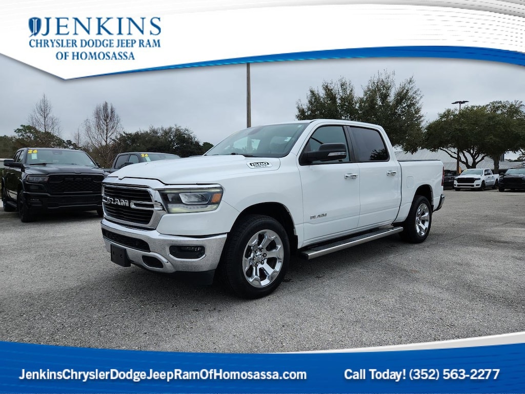 DECEMBER SAVINGS, END OF YEAR DEALS, GET THEM BEFORE THEY ARE GONE! The price does not include tax, tag, license, an electronic filing fee of $449.00**, a private tag agency fee of $199.00**, and a predelivery service charge of $1199.00** **This charge represents costs and profit to the dealer for items such as inspecting, cleaning, and adjusting vehicles, as well as preparing documents related to the sale. * EPA-estimate metric: these are contingent on ideal conditions within a lab. Real-world situations such as carrying passengers or cargo, using climate control, driving style, and ambient temperatures can affect actual metrics. 15/21 City/Highway MPG ALLOY WHEELS, BACKUP CAMERA, BLUETOOTH, HEAT PACKAGE, TOW PACKAGE, TINTED WINDOWS. CARFAX One-Owner. Clean CARFAX. Bright White Clearcoat 2019 Ram 1500 Big Horn/Lone Star 4WD 8-Speed Automatic HEMI 5.7L V8 Multi Displacement VVT