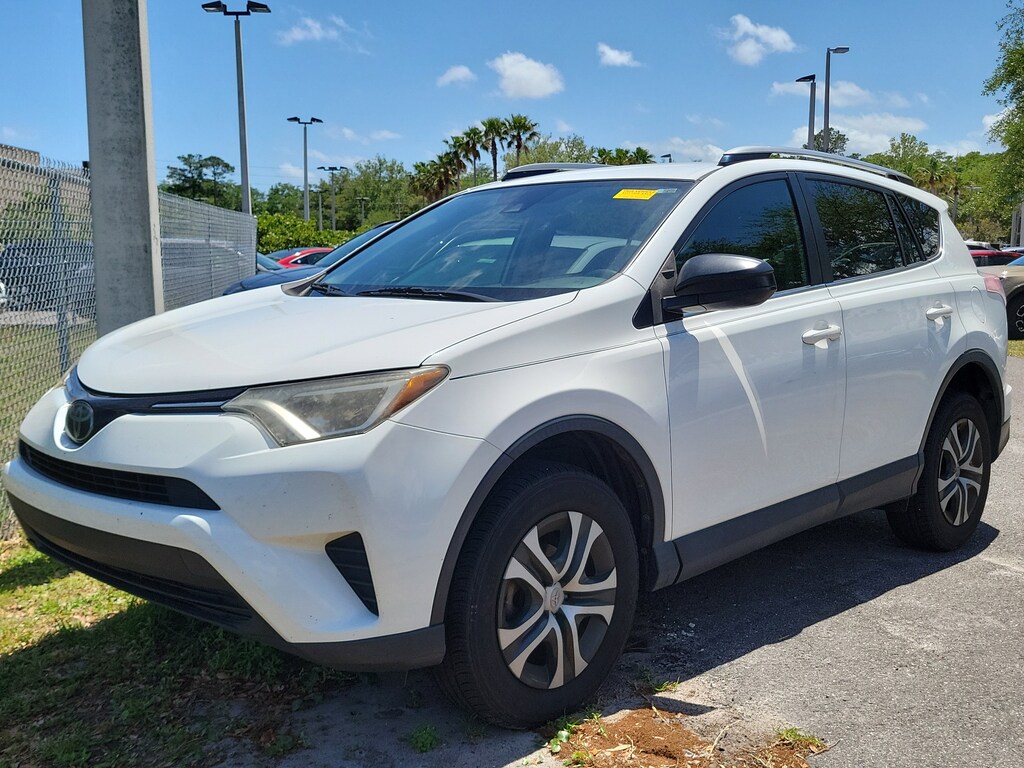 The price does not include tax, tag, license, an electronic filing fee of $449.00**, a private tag agency fee of $199.00**, and a predelivery service charge of $1199.00** **This charge represents costs and profit to the dealer for items such as inspecting, cleaning, and adjusting vehicles, as well as preparing documents related to the sale. * EPA-estimate metric: these are contingent on ideal conditions within a lab. Real-world situations such as carrying passengers or cargo, using climate control, driving style, and ambient temperatures can affect actual metrics. 23/30 City/Highway MPG This 2018 Toyota RAV4 LE in Super White features 3.815 Axle Ratio, 4-Wheel Disc Brakes, 6 Speakers, ABS brakes, Air Conditioning, AM/FM radio, Auto High-beam Headlights, Brake assist, Bumpers: body-color, CD player, Driver door bin, Driver vanity mirror, Dual front impact airbags, Dual front side impact airbags, Electronic Stability Control, Exterior Parking Camera Rear, Fabric Seat Trim, Four wheel independent suspension, Front anti-roll bar, Front Bucket Seats, Front Center Armrest, Front reading lights, Fully automatic headlights, Illuminated entry, Knee airbag, Low tire pressure warning, Occupant sensing airbag, Outside temperature display, Overhead airbag, Overhead console, Panic alarm, Passenger door bin, Passenger vanity mirror, Power door mirrors, Power steering, Power windows, Radio data system, Radio: Entune AM/FM/CD/MP3/WMA Playback w/6 Speakers, Rear anti-roll bar, Rear seat center armrest, Rear window defroster, Rear window wiper, Remote keyless entry, Roof Rails, Speed control, Speed-sensing steering, Split folding rear seat, Spoiler, Steering wheel mounted audio controls, Tachometer, Telescoping steering wheel, Tilt steering wheel, Traction control, Trip computer, and Wheels: 17" x 6.5J . Visit our showroom 24/7 at Jenkinshyundaiofjacksonville or call 904-420-3100. FWD